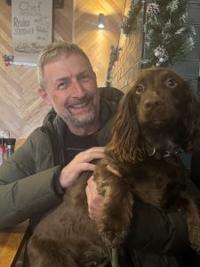 His own dog (photographed above) is a chocolate coloured Spaniel called Cocoa who he has had for nearly four years since she was a puppy.
