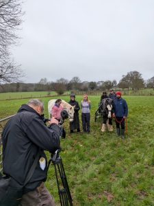 The filming, carried out in pouring rain in Alton, Hampshire before Xmas, was aimed at highlighting the work of the charity Riding for the Disabled Association (RDA)