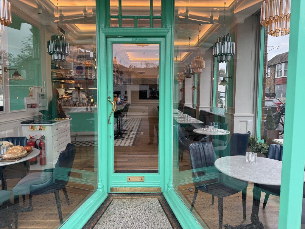 Today was a training day for the new staff and bright green window screens were removed to show the stylish interior and all the tables laid up in readiness for opening day.