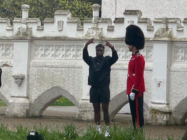 A Grenadier guard soldier and an athlete made for an unlikely duo in the grounds of the historic Strawberry Hill House.