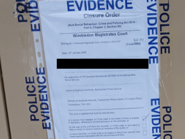 Read moreThe police served a closure notice on the address of unnamed individual in Teddington linked to drug dealing, they revealed