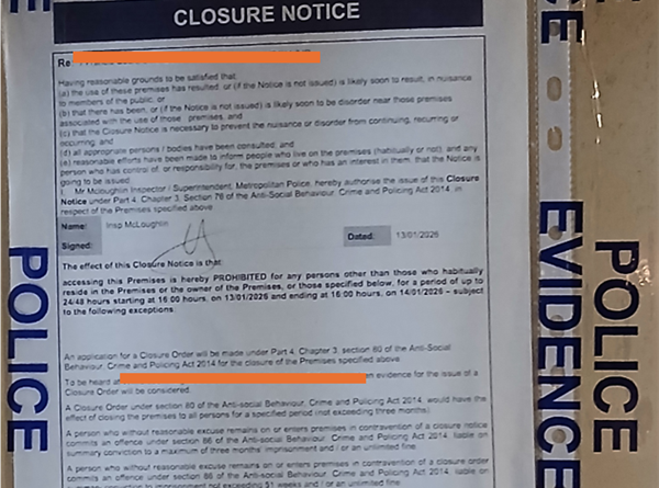 Read moreThe police served a closure notice on the address of unnamed individual in Teddington linked to drug dealing, they revealed